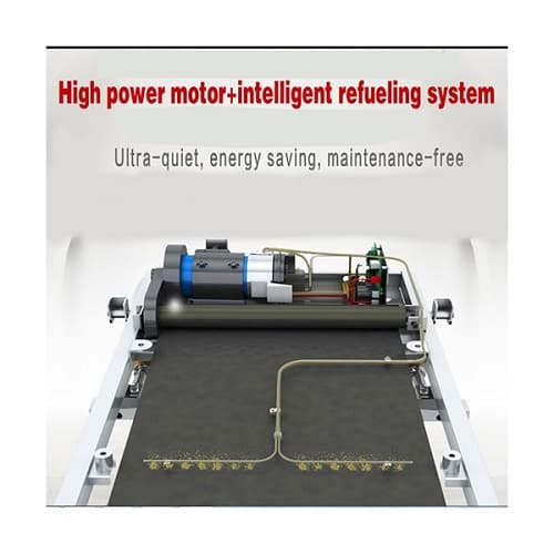 - Σύστημα αυτο-λίπανσης: Μέσω μίας αυτοματοποιημένης και αξιόπιστης διαδικασίας ο μηχανισμός λίπανσης του διαδρόμου απελευθερώνει στον τάπητα με ακρίβεια την αναγκαία μικροποσότητα λιπαντικού κάθε 5 χιλιόμετρα χρήσης. Έτσι δεν έχουμε σπατάλη λιπαντικού, διατηρούμε το διάδρομο αλλά και το περιβάλλον του καθαρό και “έχουμε το κεφάλι μας ήσυχο” αφού ο διάδρομος δεν χρειάζεται άλλη συντήρηση πέρα από το γέμισμα της δεξαμενής λιπαντικού (90 ml) κάθε τρεις περίπου μήνες (με τη συνήθη χρήση)