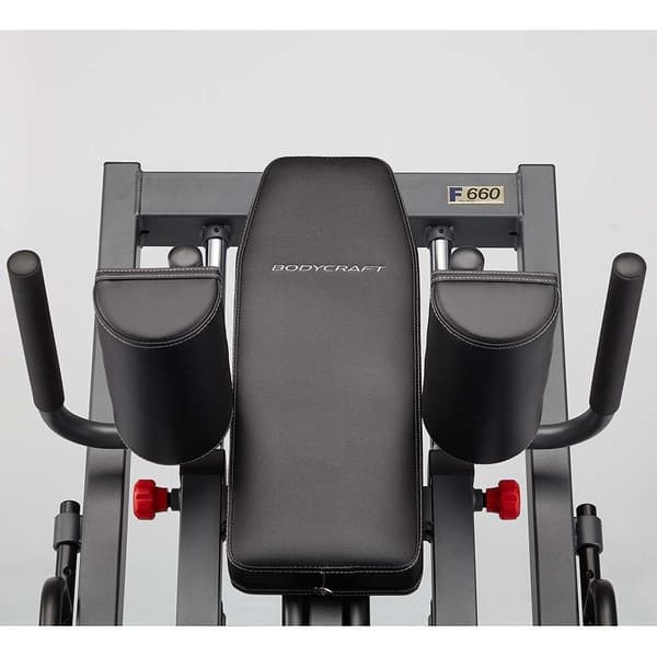 Το Hip Sled F660 της Bodycraft, προσαρμόζεται σύμφωνα με τις ανάγκες σου για εκτέλεση πολλών παραλλαγών στις ασκήσεις. Ρυθμίστε την πλάκα ποδιών στις 5 διαφορετικές γωνίες (από 75° μέχρι 135°) για να εκτελέσετε πιέσεις ποδιών, Donkey Squats, και Calf Raises. Οι ρυθμίσεις στην πλάκα θα σας επιτρέψουν να κάνετε καθίσματα εύρους 58 εκατοστών (στο χαμηλότερο σημείο) έως 162 εκατοστών (στο ψηλότερο σημείο). Διπλώστε το μαξιλάρι πλάτης εύκολα με τους μεντεσέδες που διαθέτει και πραγματοποιήστε Flex για να γυμνάσετε γάμπες. Ρυθμίστε τα μαξιλάρια ώμων, σε ένα εύρος 33 εκατοστών (13 θέσεων) για τέλεια εφαρμογή, επιτρέποντας ένα εύρος Hack Squat 91 εκατοστών (στο χαμηλότερο σημείο) μέχρι 200cm (στο υψηλότερο σημείο).