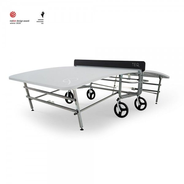 Τραπέζι Teq™ Lite Χάρη στην ελαφρύτερη δομή της, η 3η έκδοση της καινοτόμου σειράς τραπεζιών Teq™ αλλάζει πραγματικά το παιχνίδι. Το Teq™ LITE προσελκύει όλο και περισσότερους ανθρώπους σε όλο τον κόσμο για να δοκιμάσουν τις δεξιότητές τους στο Teq™. Το Teq™ LITE διατηρεί τα βασικά χαρακτηριστικά του τραπεζιού Teq™ SMART καθώς μπορεί να διπλωθεί για αποθήκευση, να πιάνει ελάχιστο χώρο και να μεταφερθεί εύκολα χάρη στους τροχούς που κλειδώνουν. Teqball Το Teqball είναι η πιο αγνή μορφή ποδοσφαίρου, που παίζεται σε ένα ειδικά κυρτό τραπέζι χωρίς σωματική επαφή μεταξύ των παικτών. Είναι ένα παιχνίδι που περιλαμβάνει πραγματικά και τα δύο φύλα, προσελκύοντας μια νέα γενιά αθλητών ή ενθουσιωδών ερασιτεχνών που φιλοδοξούν να αναπτύξουν τις τεχνικές τους δεξιότητες, τη συγκέντρωση και την αντοχή τους. Αυτό το άθλημα που βασίζεται στο ποδόσφαιρο έχει ήδη κατακτήσει τον κόσμο καθώς παίζεται σε περισσότερες από 130 χώρες του κόσμου, συμπεριλαμβανομένων σούπερ σταρ του ποδοσφαίρου όπως ο Lionel Messi, ο Ronaldinho, ο Neymar και σύλλογοι όπως Manchester United, FC Barcelona και Paris SG. Αν σε κάποιον αρέσει το ποδόσφαιρο, θα λατρέψει το teqball! Teqvoly Το επιτραπέζιο βόλεϊ, μια νέα αθλητική καινοτομία βασίζεται στα θεμέλια του βόλεϊ και παρουσιάζει μια νέα μορφή του αθλήματος. Χρησιμοποιώντας την ιδέα του κυρτού τραπεζιού TEQ™, δημιουργήσαμε ένα άθλημα που μπορεί να παίξει οποιοσδήποτε, ανά πάσα στιγμή, οποιασδήποτε ηλικίας και φύλου, τόσο σε εσωτερικούς όσο και σε εξωτερικούς χώρους. Η TEQVOLY™ είναι η αθλητική μάρκα που καλύπτει εκδηλώσεις επιτραπέζιου βόλεϊ και εμπορευματοποίησης προϊόντων. TeqQatch Το Qatch δεν είναι μόνο μια αθλητική δραστηριότητα που παίζεται με έναν πολυλειτουργικό αθλητικό εξοπλισμό, το τραπέζι Teq, αλλά και μια ποιοτική εναλλακτική ιδέα προπόνησης για το χάντμπολ. Το Qatch επιτρέπει στο παιχνίδι να είναι δημιουργικά ανταγωνιστικό, καθιερώνοντας καλύτερη κατανόηση της λήψης αποφάσεων εντός του παιχνιδιού και της ομαδικής εργασίας. Σε αυτό το σωματικά δύσκολο παιχνίδι, δύο ομάδες των τριών παικτών ρίχνουν την μπάλα μπρος-πίσω η μία στην άλλη με έντονο τρόπο. Αυτό που κάνει αυτό το νέο και καινοτόμο άθλημα να ξεχωρίζει, είναι ότι δύο παίκτες από την ίδια ομάδα, οι επιθετικοί, βρίσκονται στο ίδιο άκρο του πίνακα, ενώ ο τρίτος παίκτης, ο αμυντικός, βρίσκεται στο αντίθετο άκρο μεταξύ των αντιπάλων τους. Teqis Το Teqis είναι ένα καινοτόμο άθλημα ρακέτας. Εκτός από τα ευχάριστα και διασκεδαστικά στοιχεία του, αναπτύσσει και απαιτεί ικανότητες από τους παίκτες όπως συγκέντρωση, γρήγορη αντίδραση και τεχνική ακρίβεια, αφού η μπάλα αναπηδά διαφορετικά λόγω του καμπυλωτού σχήματος του τραπεζιού Teq. Το Teqis μπορεί να παιχτεί σε εσωτερικούς και εξωτερικούς χώρους, καθώς και σε πολλές διαφορετικές επιφάνειες, όπως πηλό, σκληρό γήπεδο, γρασίδι, χαλί ή άμμο, γεγονός που κάνει το teqis ακόμα πιο ευχάριστο και δίνει στους παίκτες περισσότερες προκλήσεις. Teq™ Smart Table Βραβεία & Πιστοποιήσεις Βραβείο iF Design Το βραβείο σχεδιασμού iF Design ανήκει στο πιστοποιημένο μη κερδοσκοπικό iF Design Foundation, το οποίο προωθεί το σχεδιασμό και την κοινωνική του σημασία στον κόσμο και είναι πραγματικά ανεξάρτητο. Ο νικητής επιλέγεται από μια επαγγελματική κριτική επιτροπή, η οποία εργάζεται βάσει αντικειμενικών προτύπων προβολής – για μια δίκαιη διαδικασία για όλους τους συμμετέχοντες. Ουγγρικό Βραβείο Σχεδιασμού Η αξιολόγηση ακολουθε