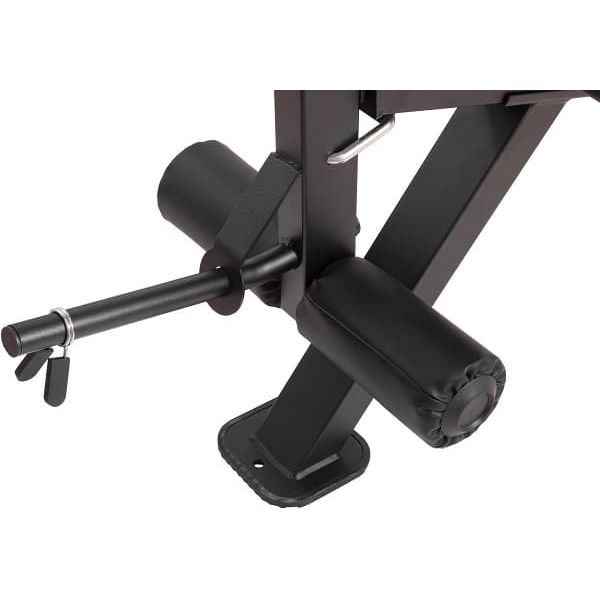 Διαθέτει 6 διαφορετικές θέσεις πλάτης και 4 διαφορετικές θέσεις καθίσματος για να προσαρμόσετε την κλίση ανάλογα με την άσκηση που εκτελείτε. Γυμνάστε τους μύες των χεριών με την βοήθεια του μαξιλαριού δικεφάλων. Το μαξιλάρι θα σας βοηθήσει να εστιάσετε και να απομονώσετε καλύτερα τους δικεφάλους. Με το σύστημα ποδιών γυμνάστε τετρακεφάλους (με το κάτω σετ μαξιλαρών) ή τους μηριαίους δικεφάλους (με το πάνω σετ μαξιλαριών). Φορτώστε την ειδική υποδοχή με δίσκους (μέχρι 45 κιλά συνολικά) προκειμένου να προσθέσετε βάρος για τις ασκήσεις ποδιών. Η ειδική υποδοχή μπορεί να δεχθεί τόσο δίσκους διαμέτρου 28mm όσο και δίσκους 50mm (με τον κατάλληλο αντάπτορα που περιλαμβάνεται). Τέλος διαθέτει ρόδες για την εύκολη μεταφορά του.