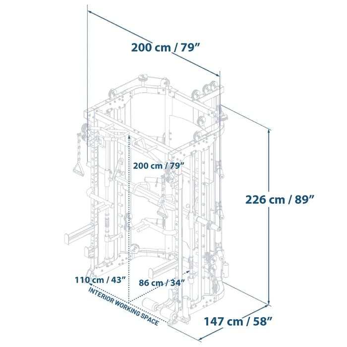 Διαθέτει 22 θέσεις ρύθμισης ύψους των λαβών για τις ασκήσεις με συρματόσχοινο από όλες τις γωνίες, για ασκήσεις ώμων, χεριών, στήθους, πλάτης & ποδιών.