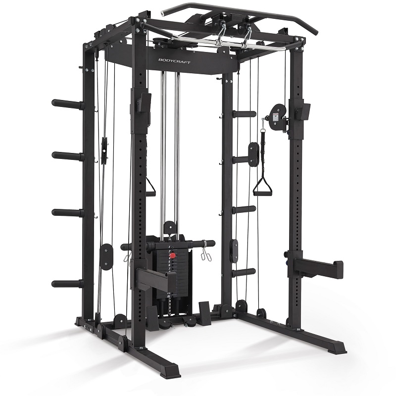 Το πολυόργανο Bodycraft Super Gym 1 έχει σχεδιαστεί για να προσφέρει λύσεις τόσο σε μεμονωμένους χρήστες όσο και για επαγγελματίες με περιορισμένο χώρο, καθώς περιλαμβάνει κλωβό δύναμης και τροχαλίες μαζί. Προσθέστε το Smith και τα άλλα αξεσουάρ για ένα ολοκληρωμένο μηχάνημα εκγύμνασης με την εγγύηση της Bodycraft.