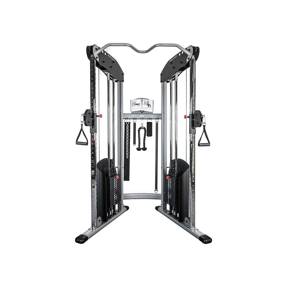 Η διπλή τροχαλία της Bodycraft HFT, είναι κατασκευασμένη με τα κορυφαία υλικά και είναι ιδανική για το personal studio σας, το γυμναστήριο του ξενοδοχείου ή ακόμα και για το σπίτι σας. Πολύ όμορφος σχεδιασμός με οβάλ σίδερα, κομμένα με laser cut για απόλυτη ακρίβεια. Το συνολικό βάρος πλακών 180 κιλών θα ικανοποιήσει ακόμα και τους πιο απαιτητικούς. Τα συρματόσχοινα υψηλής αντοχής και οι τροχαλίες από Fiberglass με τα σφραγισμένα ρουλεμάν προσφέρουν χαρακτηριστική Smooth αίσθηση.