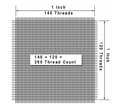 Τ σημαίνει Thread δηλαδή ίνα και ο αριθμός φανερώνει το άθροισμα των κάθετων και των οριζόντιων ινών σε μια τετραγωνική ιντσα υφάσματος (βλέπε φώτο). Όσο πιο μεγάλο το Thread τόσο πιο πυκνή η πλέξη και τόσο μεγαλύτερη η αντοχή του υφάσματος.