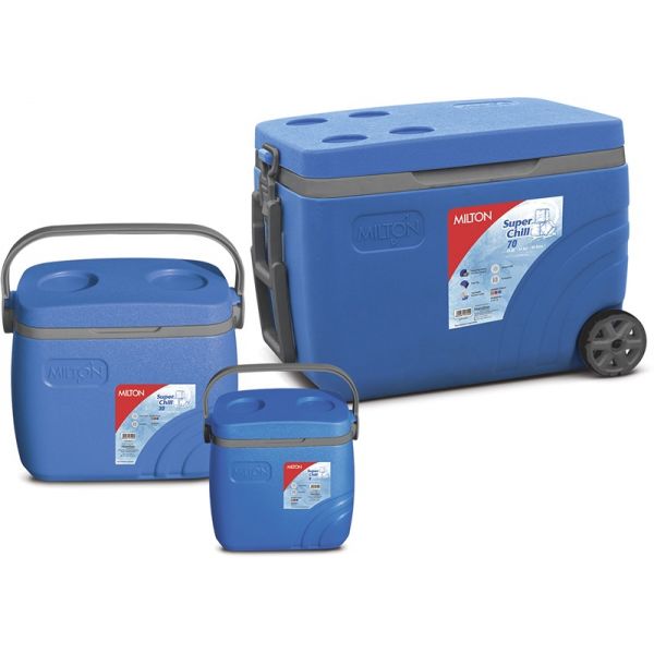 Τα SUPER CHILL ψυγεία της MILTON είναι κατασκευασμένα από PP (πολυπροπυλένιο), ένα θερμοπλαστικό πολυμερές γνωστό για τις αντοχές του στις υψηλές θερμοκρασίες και την σκληρότητα του. Ανάμεσα στα τοιχώματα του διαθέτει ειδική μόνωση από PU (πολυουρεθάνη), ένα υλικό ευρέως γνωστό για τις μονωτικές του ιδιότητες. Έτσι μπορείτε να πάρετε μαζί σας στις διακοπές σας, στην εκδρομή, στη θάλασσα, στο βουνό, στη λίμνη, στο πάρκο ή οπουδήποτε αλλού χρειάζεται να διατηρήσετε τη θερμοκρασία σταθερή σε διάφορα προϊόντα. Διοργανώστε μοναδικά πάρτι, έχοντας εύκολη πρόσβαση στα κρύα ποτά στην ταράτσα ή στον κήπο. Με την χρήση πάγου μπορείτε να παγώσετε και να διατηρήσετε τα αναψυκτικά/ποτά σας για πολλές ώρες, ενώ με την χρήση παγοκύστης μπορείτε να διατηρήσετε την θερμοκρασία εσωτερικά προκειμένου να μεταφέρετε ευαίσθητα τρόφιμα όπως γάλα ή κρέας. Όλα τα υλικά που έχουν χρησιμοποιηθεί είναι BPA Free Food Grade!