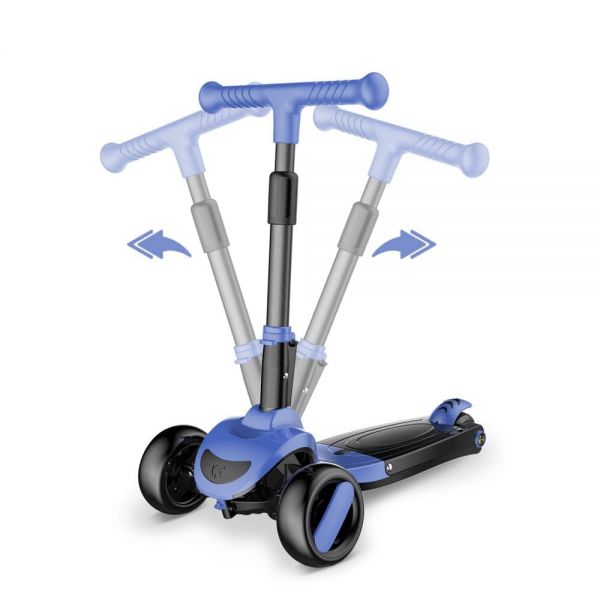 Το πτυσσόμενο τιμόνι ρυθμίζεται πανέυκολα σύμφωνα με το ύψος του παιδιού, ακολουθώντας την ανάπτυξή του και ασφαλίζει επιπλέον με καπάκι που βιδώνει για να αποφύγουμε τυχον τραυματισμούς στα χεράκια των παιδιών μας. Το τιμόνι χρησιμοποιείται κυρίως για τη διατήρηση της ισορροπίας και οι ελιγμοί/στροφές πραγματοποιούνται με εξισορρόπηση και κλίση του τιμονιού στη μία ή την άλλη πλευρά.
