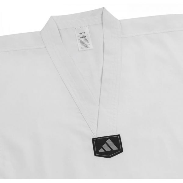 Χρήσιμα χαρακτηριστικά ενισχύουν την εμπειρία, όπως το λάστιχο στην μέση με επιπλέον κορδόνι για ασφαλή και ρυθμιζόμενη εφαρμογή, καθώς και τα ενισχυμένα τελειώματα για μεγαλύτερη αντοχή κατά την έντονη δραστηριότητα. Διχτυωτά επιπρόσθετα κάτω από τις μασχάλες για ρύθμιση θερμοκρασίας. Για να ολοκληρωθεί το σετ, η στολή adidas BASIC περιλαμβάνει επίσης λευκή ζώνη, αποτελώντας μια ολοκληρωμένη λύση για όσους ξεκινούν το ταξίδι τους στο Ταεκβοντό.
