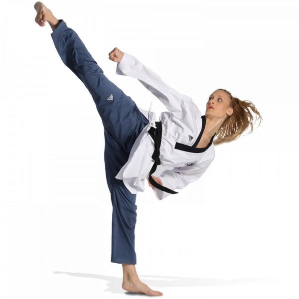 Το poomsae δεν απαιτεί αντίπαλο επειδή είναι μία δοκιμασία προσωπικής τεχνικής. Γι’ αυτό οι ειδικοί των poomsae απαιτούν μία στολή Taekwondo Poomsae εξαιρετικής ποιότητας, άλλα επίσης ειδική σε σχεδιασμό και εμφάνιση. Το Adidas Dobok POOMSAY για γυναίκες καλύπτει αυτές τις απαιτήσεις και ήδη έχει γίνει το αγαπημένο dobok για πολλές διεθνής αθλήτριες.