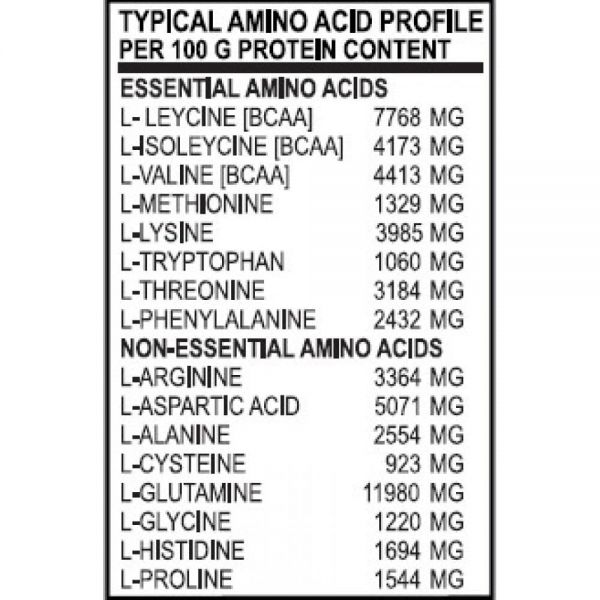 Επιπλέον, είναι ενισχυμένα με μεγάλη ποσότητα αντικαταβολικών διακλαδισμένων αμινοξέων (BCAAs) και έχουν μία από τις μεγαλύτερες περιεκτικότητες σε βασικά αμινοξέα που το σώμα δεν μπορεί από μόνο του να συνθέσει και πρέπει απαραίτητα να λαμβάνονται από τη διατροφή.
