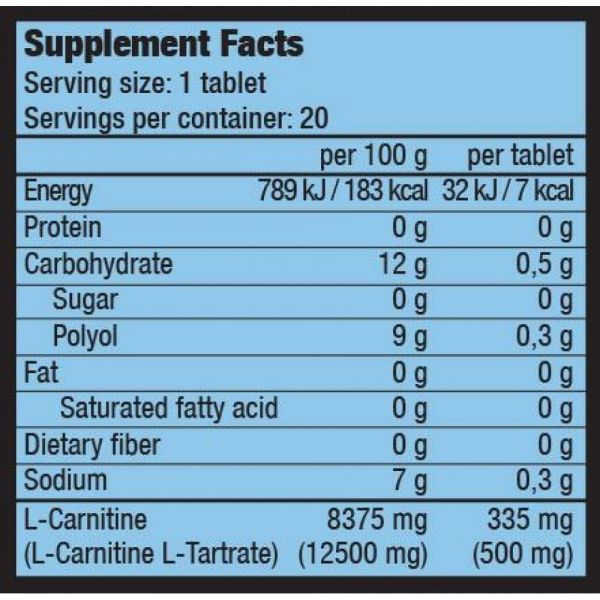 Η L-Carnitine 500mg είναι ένα αναβράζον δισκίο που παρέχει 500mg L-Carnitine ανά μερίδα. Είναι φτιαγμένο για άτομα που θέλουν να τα βοηθήσει να επιτύχουν τους στόχους διαχείρισης βάρους και φυσικής κατάστασης.