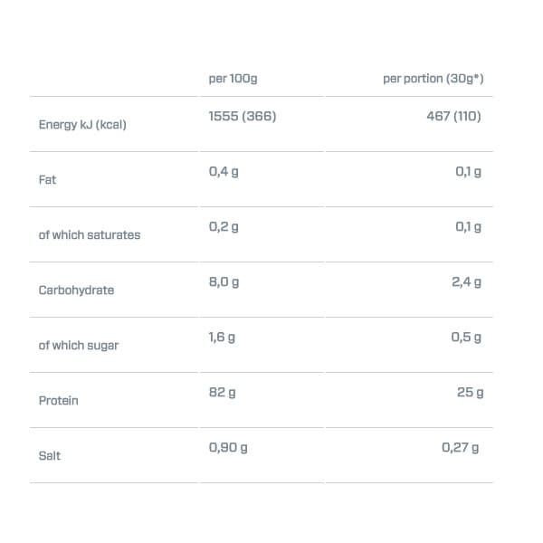 - 25 g isolate πρωτεΐνης ορού γάλακτος ανά δόση