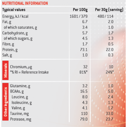 Διατροφικές Πληροφορίες: Σε κάθε 1 δόση 30 g (1 μεζούρα)