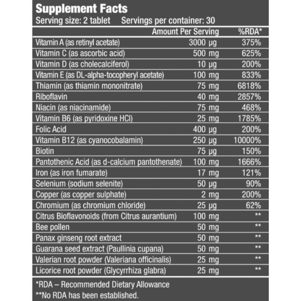 Ισορροπημένο σύμπλεγμα βιταμινών Β το οποίο παρέχει οχτώ βασικές βιταμίνες Β μαζί με άλλες βιταμίνες, μέταλλα, αντιοξειδωτικά και βότανα. Οι βιταμίνες Β είναι απαραίτητες για το μεταβολισμό του υδατάνθρακα και την παραγωγή ενέργειας.