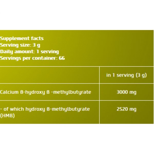 Μια δόση HMB 3000 περιέχει 3.000 mg από βήτα ασβεστίο-βήτα υδροξύ-μεθυλεστέρα, ενός συστατικού που οι επαγγελματίες bodybuilders χρησιμοποίουν εδώ και δεκαετίες για να επιτύχουν τους στόχους τους.