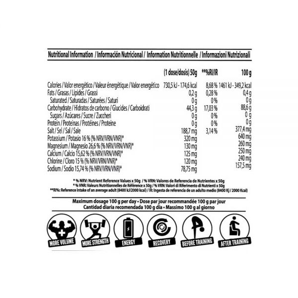 Δοσολογία: 3 Χ μεζούρες (50gr. - 174 kcal) κάθε φορά, διαλυμένο σε 250 με 300 ml, νερού ή χυμού με δυνατότητα συνδυασμού με οποιαδήποτε μορφή συμπληρώματος πρωτεΐνης ή αμινοξέων! Με άδειο στομάχι και όχι κοντά σε φυσικά γεύματα!